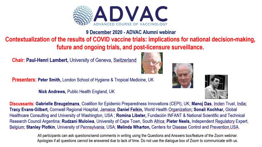 Contextualization of the results of COVID vaccine trials: implications for national decision-making, future and ongoing trials, and post-licensure surveillance. Presenters : Professor Peter Smith and Professor Nick Andrews.