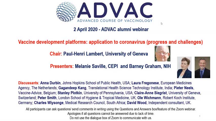 Vaccine development platforms: application to coronavirus (progress and challenges). Presenters: Dr Barney Graham, NIH, USA and Dr Melanie Saville, CEPI